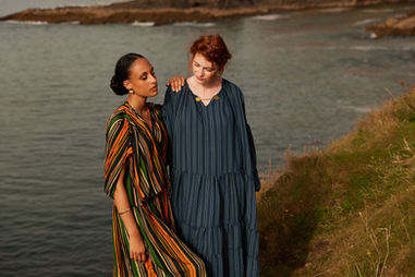Une palette de couleurs mariant douceur avec des mauves pastels évoquant les coloris fleuris de bruyère et du glaz (bleu-vert - teinte de prédilection de la marque) qui se mêlent aux nuances plus lumineuses du orange lichen ou de l'ajonc qui apparaissent dans des rayures comme le vert Émeraude que l'on retrouve dans un velours (en précommande, mais pas sur les photos); et bien sûr également des nuances beiges de la dune et du sable...